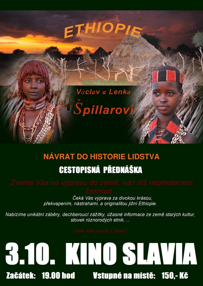 Zveme Vás na výpravu do země nad níž nepřestanete žasnout. Čeká Vás výprava za divokou krásou, překvapením, nástrahami a originalitou jižní Ethiopie. Láclav a Lenka Špillarovi - návrat do historie lidstva | cestopisná přednáška