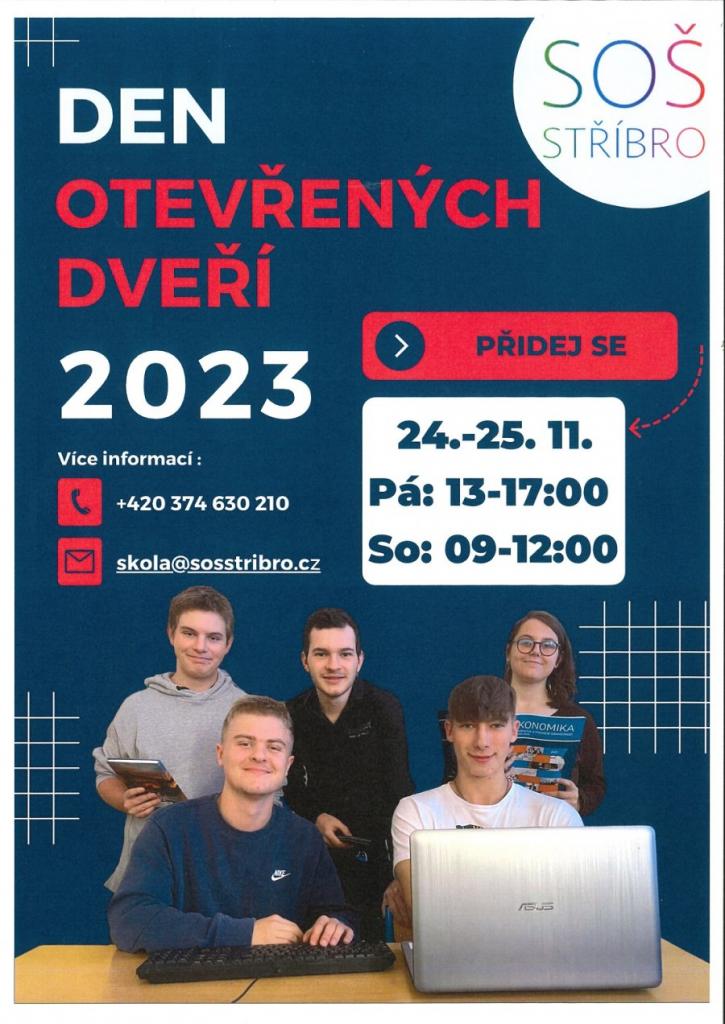 Podrobné informace o studiu můžete získat právě při osobní návštěvě školy v pátek 24. 11. od 13 do 17 hodin nebo v sobotu 25. 11. od 9 do 12 hodin. Budovou školy vás provedou studenti jednotlivých oborů, kterých se můžete zeptat na vše, co vás zajímá. K dispozici vám bude i vedení školy a učitelé odborných i všeobecně vzdělávacích předmětů.