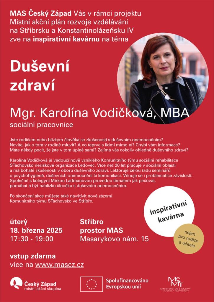 Akce se koná 18. března 2025 od 17:30 do 19:00 v prostorách MAS na Masarykově náměstí 15 ve Stříbře. Po skončení akce bude možné navštívit nové zázemí Komunitního týmu STachovsko. Vstup je zdarma.