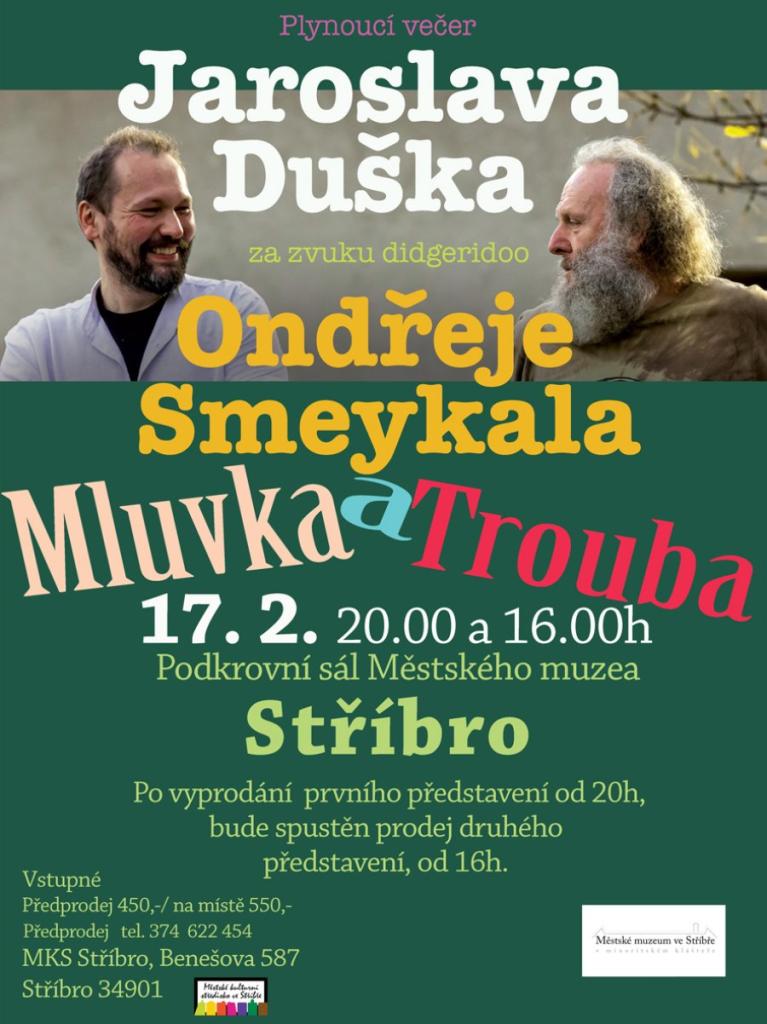 MKS Stříbro, Benešova 587, Stříbro 34901 Předprodej : 450,- / na místě 550,- Sál má kapacitu 90 míst, v případě vyprodání vystoupení od 20h, bude spuštěn prodej druhého představení od 16h.