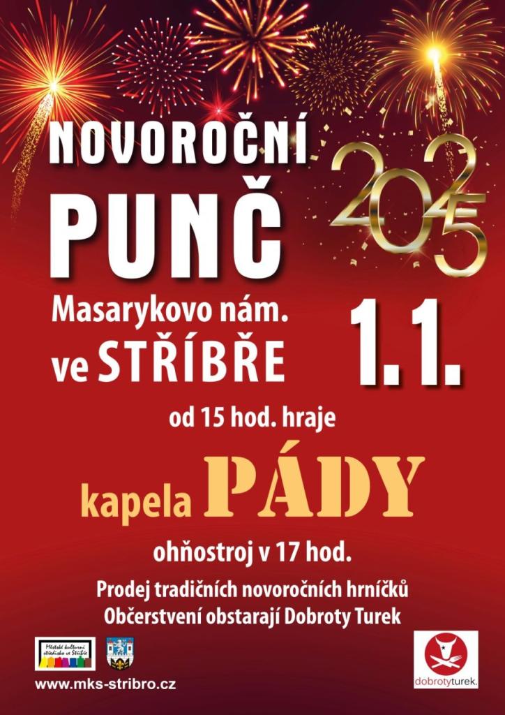 Novoroční oslavy ve Stříbře se konají na Masarykově náměstí. Akce začíná v 15 hodin koncertem kapely PÁDY, po kterém se můžete těšit na ohňostroj v 17 hodin. K dispozici budou tradiční novoroční hrníčky a občerstvení od Dobroty Turek.