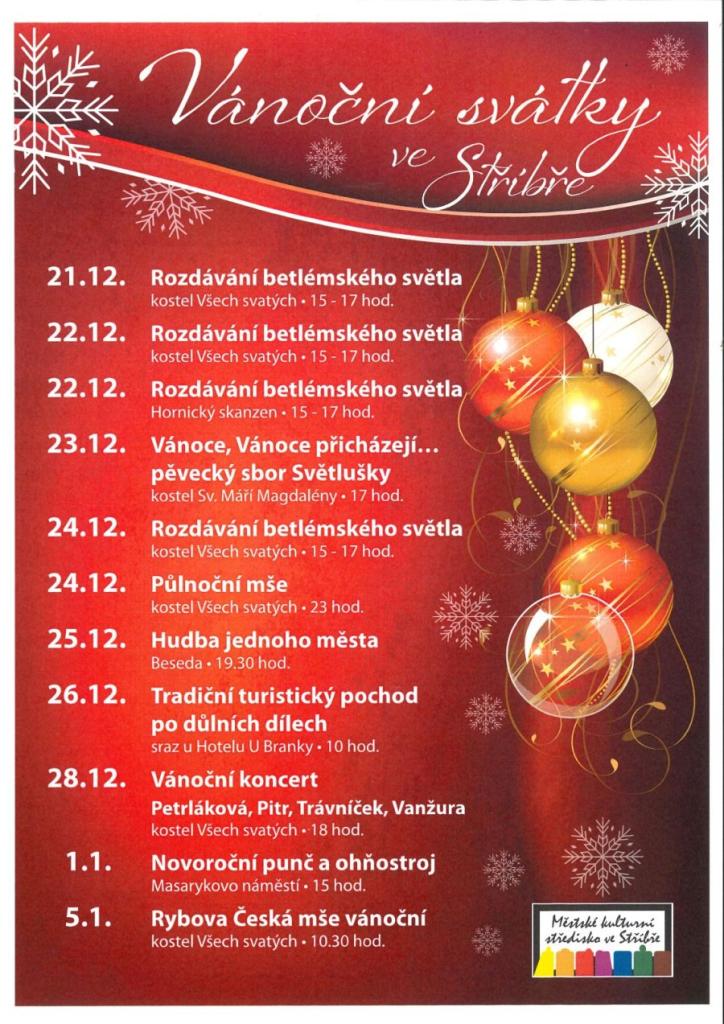 V rámci vánočního období se koná celá řada akcí, včetně rozdávání betlémského světla v kostele Všech svatých, vánočního koncertu a půlnoční mše. Navíc se můžete těšit na novoroční punč a ohňostroj na Masarykově náměstí.