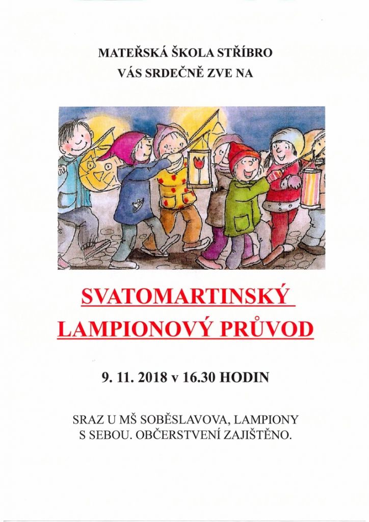 Mateřská škola Stříbro Vás srdečně zve na Svatomartinský lampionový průvod.
