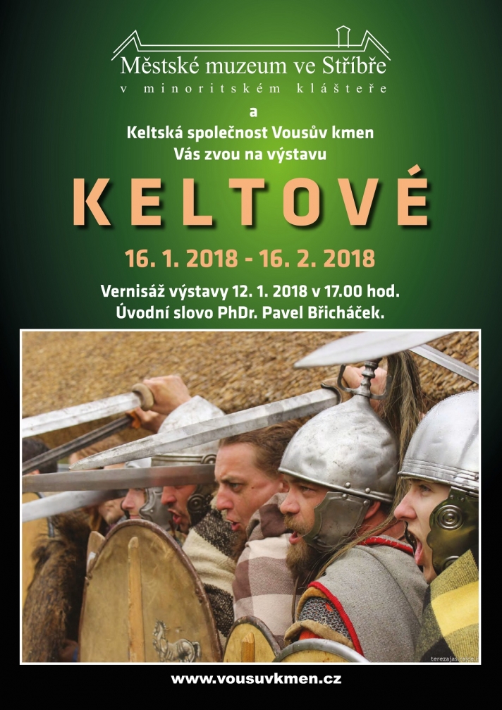 Srdečně zveme na vernisáž výstavy KELTOVÉ. Začíná 12.1.2018 od 17:00 hodin. Uvodní slovo bude mít pan PhDr. Pavel Břicháček.