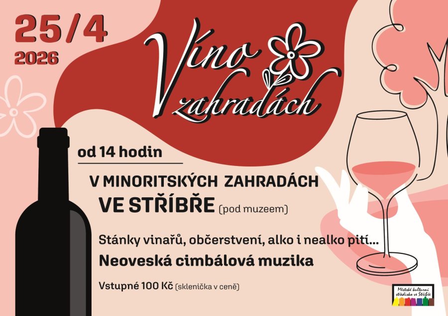 Slavnosti vína a dobrého jídla VÍNO V ZAHRADÁCH se letos konají v prostoru Minoritských zahrad ve Stříbře. Čekají vás stánky osvědčených vinařů, občerstvení do Dobroty Turek, káva, míchané nápoje a samozřejmě Neoveská cimbálová muzika.