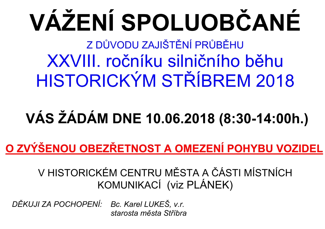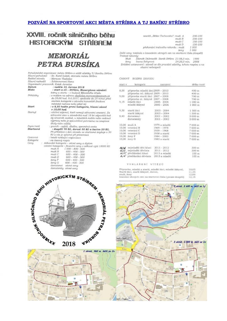 Město Stříbro, jako historické město s bohatou sportovní minulostí, zajišťuje pořádání XXVIII. ročníku silničního běhu historickým Stříbrem – memoriál Petra Bursíka.
