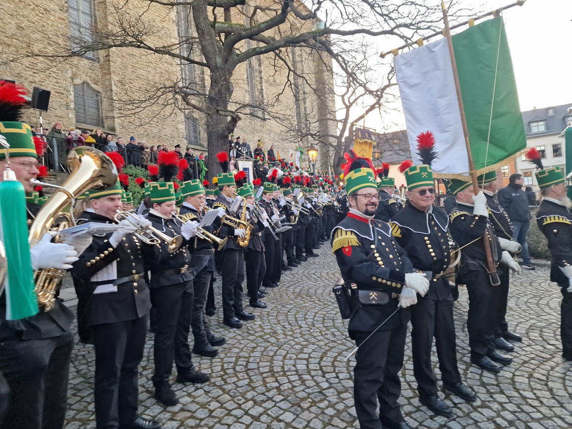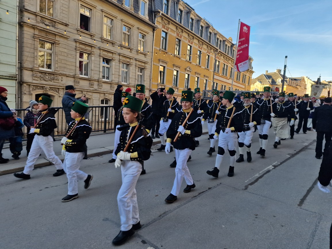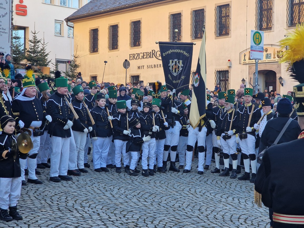 Něco z historie pořádání hornických parád v Annabergu. Hornictví bylo v Krušných horách nejdůležitější hospodářskou činností a dodnes utváří život a zvyky v tomto regionu. Hornické průvody, jako vyjádření této bohaté hornické tradice, se v Sasku rozvinuly zejména v 16. století a slaví se dodnes. Od roku 2016 jsou uznávány jako nehmotné kulturní dědictví. 21. prosince 2025 se v Annabergu-Buchholz konal Velký hornický průvod – zúčastnilo se ho více než 1 200 účastníků v tradičních krojích, včetně asi 300 hudebníků, z celého Saska a dalších hornických regionů po celém Německu. Velká hornická přehlídka, která je vrcholem předvánočního období. Částečný seznam Velké hornické přehlídky v Annabergu-Buchholzu Horníci a bratrstvo Frohnau, BMK "Frisch Glück" Annaberg / Frohnau, Sdružení starých horníků MRS Frohnau, Horníci a bratrstvo Scheibenberg, Hornický spolek Hohenstein-Ernstthal, Cech horníků Johanngeorgenstadt, Hornická kapela Thum, Hornické bratrstvo Thum, Hornický cech Rittersgrün, Hornické bratrstvo Sosa, Hornický cech Schlettau, Hornický hudební spolek Ehrenfriedersdorf, Hornické pohřební bratrstvo Ehrenfriedersdorf, Cech hutních dělníků Waldkirchen, Hornický spolek Aue, LBMK "Sachsen" Schneeberg, Hornické bratrstvo Bad Schlema, Hornický spolek Zwickau, Sdružení pro místní historii Reinsdorf, Hornický cech Lugau-Oelsnitz, Hnědé uhlí Meuselwitz (Durynsko), Hornické bratrstvo Wiesa, Horničtí bratři Kirchberg, Hornické bratrstvo Schneeberg, Hornická kapela Schneeberg, Hornické bratrstvo Schneeberg Hornický cech Měděnec (Česká republika) Hornická kapela Oederan, Hornická kapela Freiberg, Hornický spolek Altenberg, Hornický spolek Glashütte, Hornický spolek Berggießhübel, Hornický spolek Scharfenberg, Hornická kapela Pobershau, Hornické bratrstvo Pobershau, Hornický spolek Marienberg, Hornický spolek Marienberg, Sdružení horníků Olbernha Olbernhau/Hudební spolek Olbernhau Hornický a hutní spolek Mansfeld Eisleben (Sasko-Anhaltsko), Spolek hornických tradic Zwönitz, Hornické bratrstvo Geyer, Hornický spolek Lengefeld, Hornický hudební spolek Jöhstadt-Grumbach, Hornický spolek Jöhstadt, Spolek hutí Antonsthal, Spolek hornických trafikantů ze Schwarzenbergu Harismudi a další a Bratrstvo sv. Barbory ze Stříbra