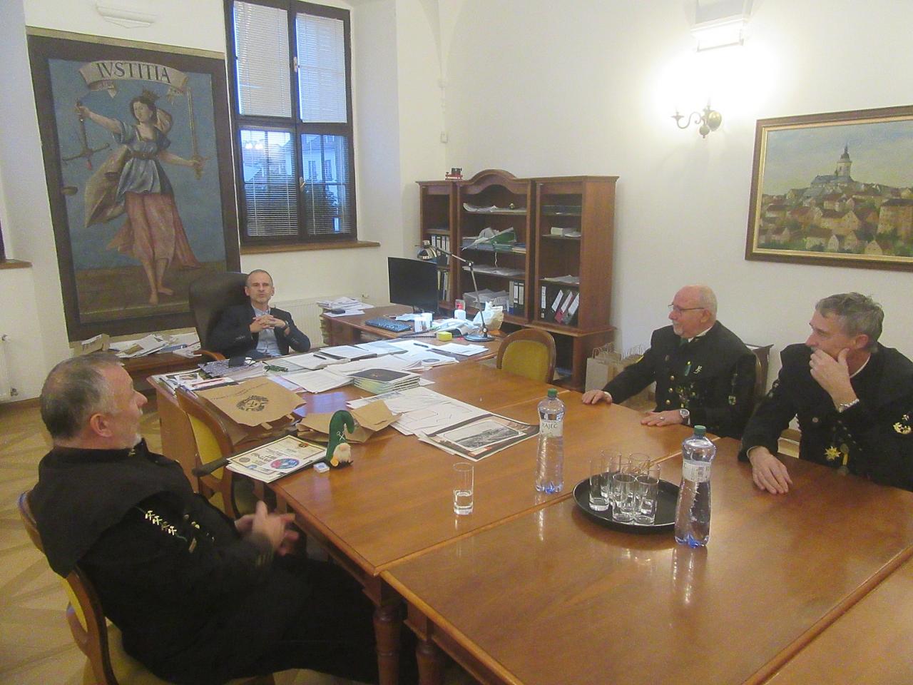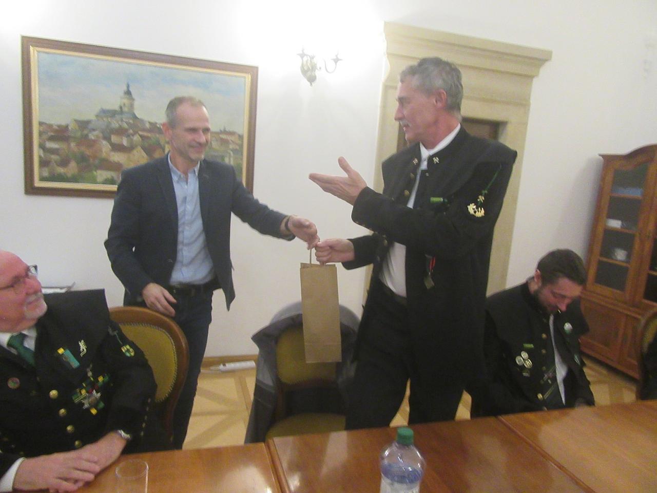 5. ledna 2023 (ČT) byli členové Bratrstva sv. Barbory ve Stříbře pozváni ke slavnostní návštěvě starosty města Stříbra M. Záhoře. Členové spolku v hornických uniformách a se svým hornických praporem sv. Barbory se dostavili v plné síle. Starostovi města jsme předali pozornost ve formě slavnostní hornické sekery, diplomu, permoníka, šperku, diplomu a CD ze setkání v Banské Štiavnici, které dorazilo na naši adresu na štědrý den. Starosta předal našemu členovi V. Nejedlému rovněž malou pozornost z důvodu narozenin, které měl dotyčný předevčírem. Obě strany si vzájemně sdělili informace ohledně spolkové činnosti a činnosti města v roce 2023. Bratrstvo informovalo starostu města o své ¾ roční činnosti. Za velmi krátkou dobu navštívili členové mnoho významných hornických událostí u nás a v zahraničí. Bratrstvo bylo oceněno předsedou Českého báňského úřadu za svoji dlouholetou činnost Zlatou medailí. Posezení proběhlo v přátelské atmosféře. Nakonec samozřejmě nemohlo chybět společné foto. Rozcházeli jsme se s příslibem dalšího setkání za rok.
